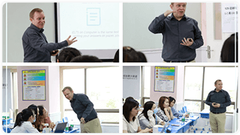 2021年6月24日,英国文化教育协会(雅思考试的主办方)首场线下培训活动在北京举行,英语语言测评专家Jonathan Dixon对新航道的教学团队进行了写作以及口语方面的教学培训。分析了雅思纸笔考试与机考的区别以及近几年雅思考生的平均分变化情况;分享了学术类以及培训类雅思作文的写作要点、审题方式、写作结构以及措辞表达等方面的教学方法。